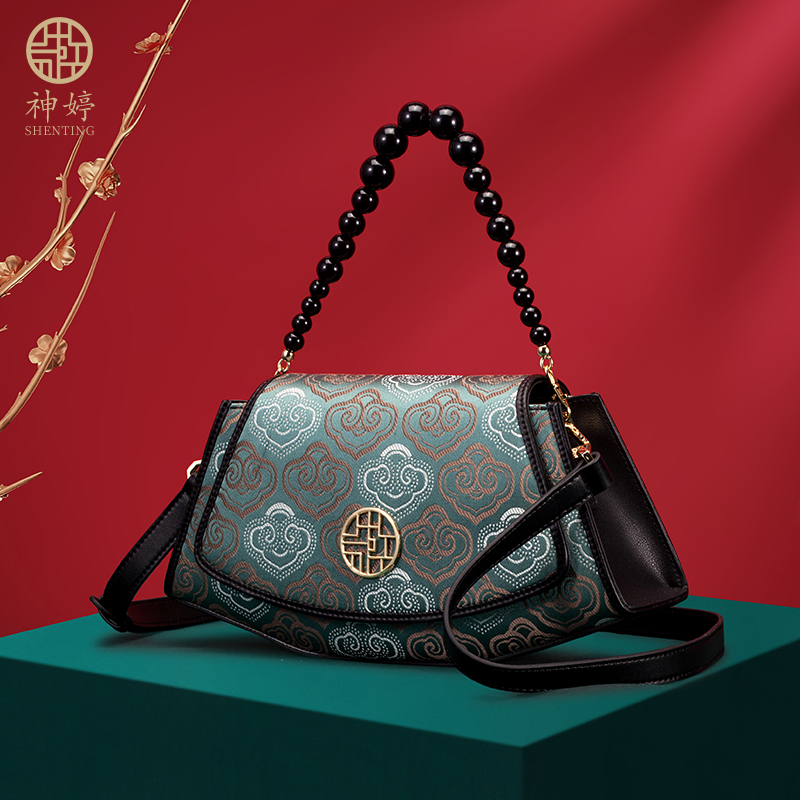 Chinese Style Classic Clutch Shoulder Tote Handbag Ladies Cow Leather Cross Body Purses
