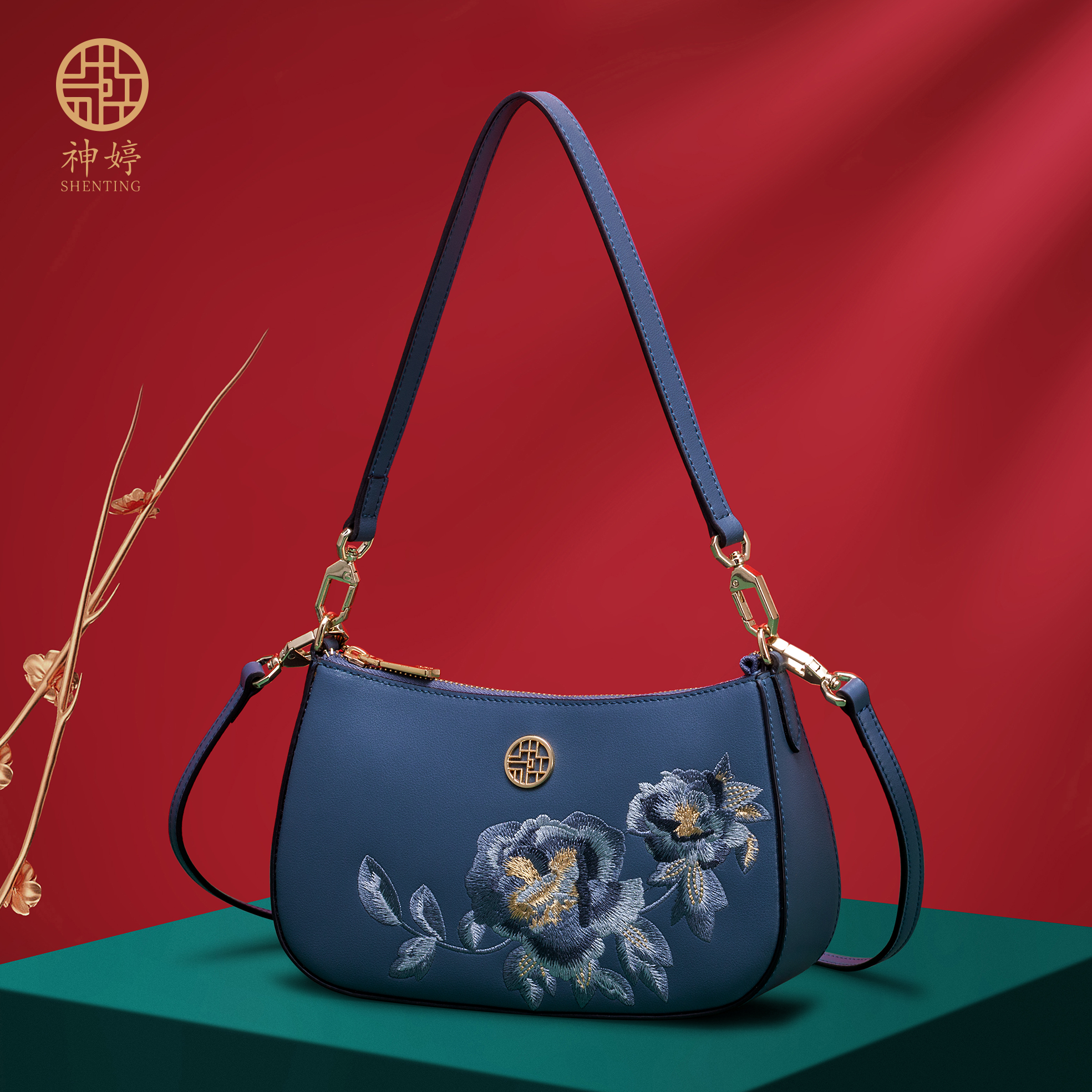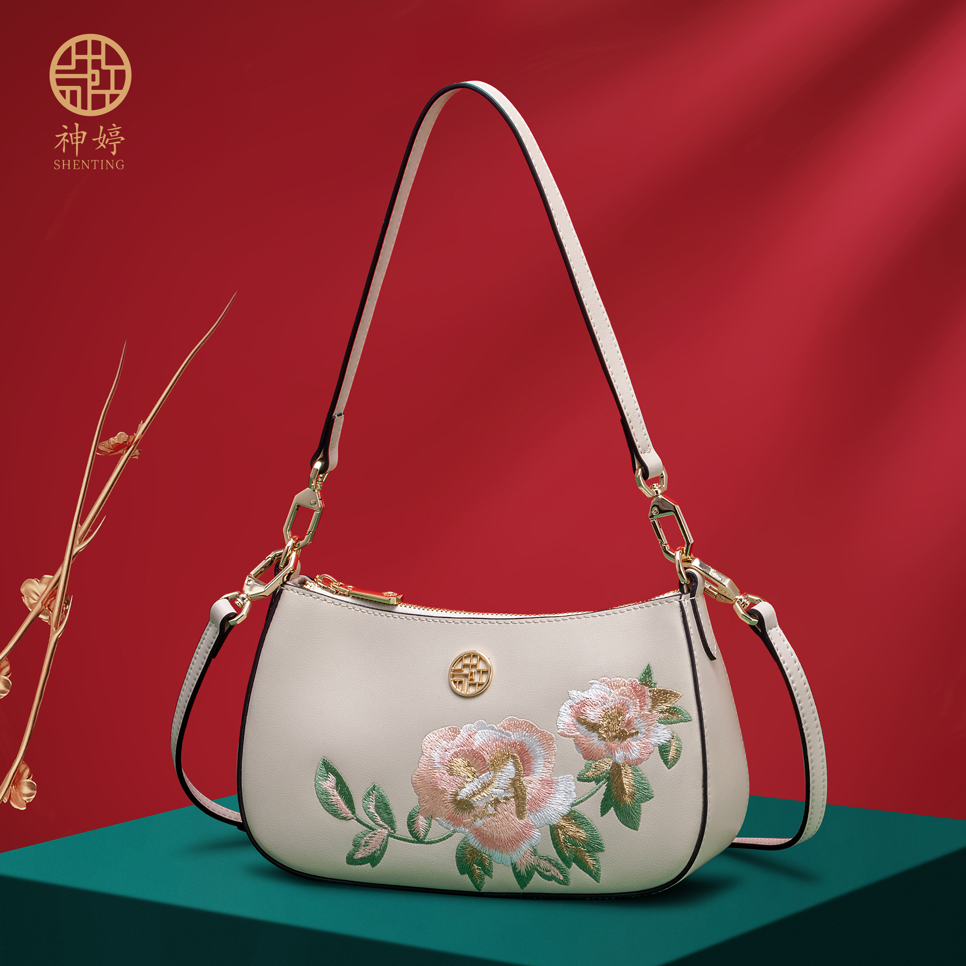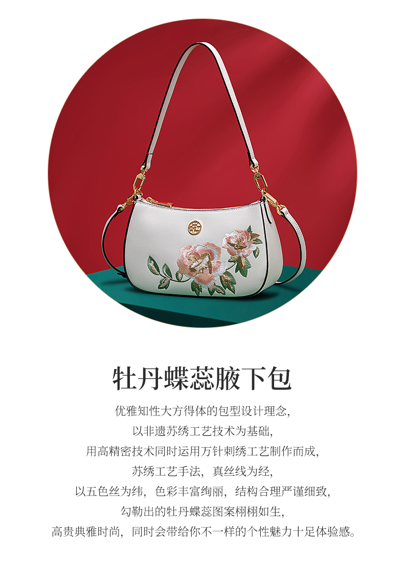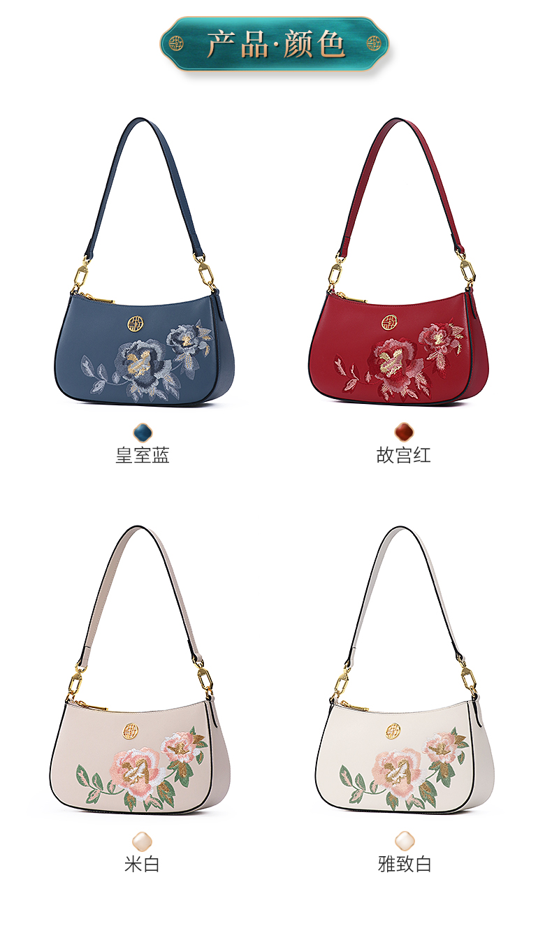 Chinese Style Classic Clutch Shoulder Tote Handbag Ladies Cow Leather Cross Body Purses