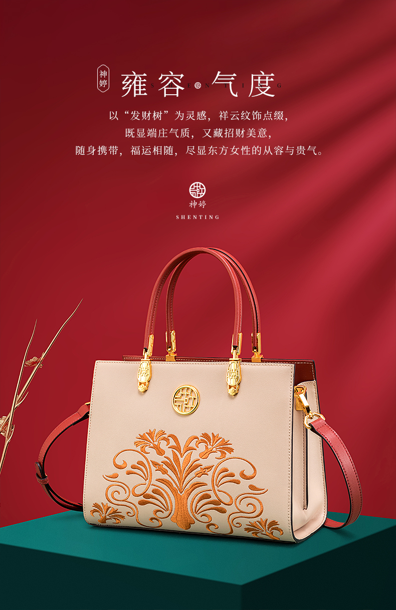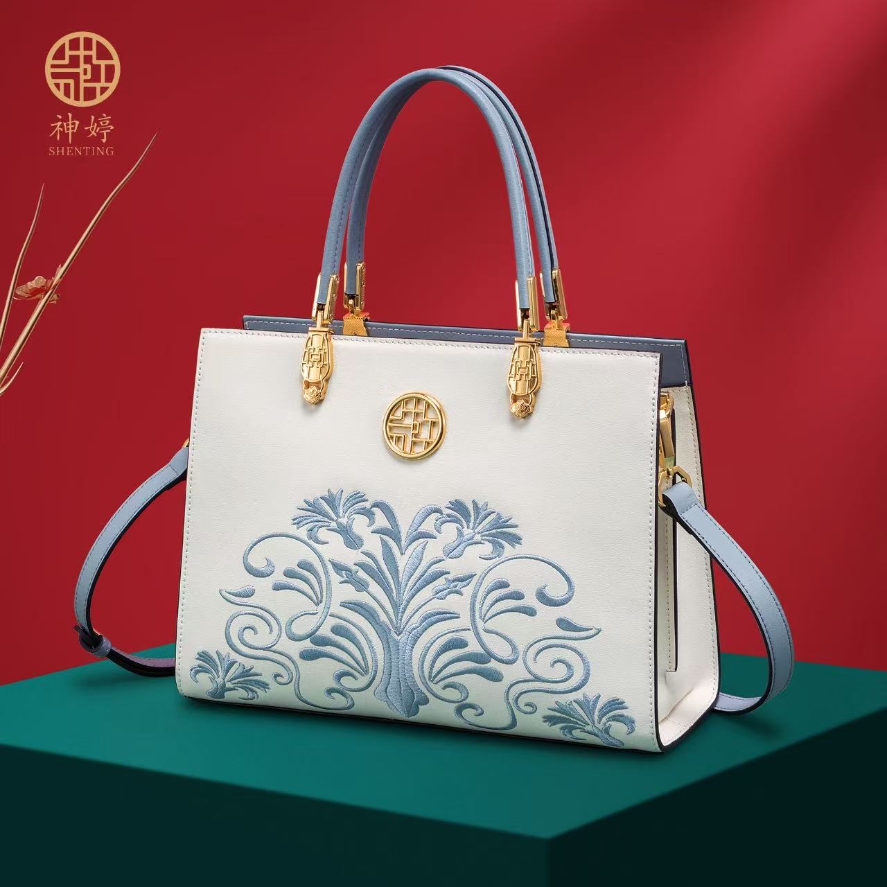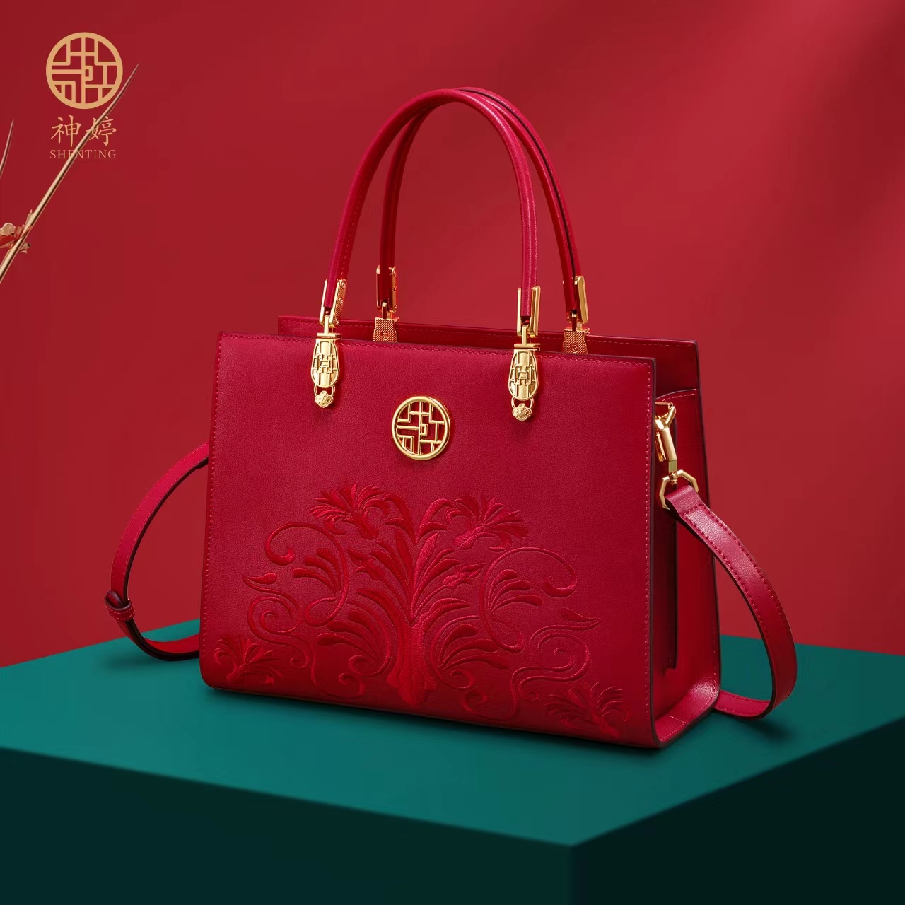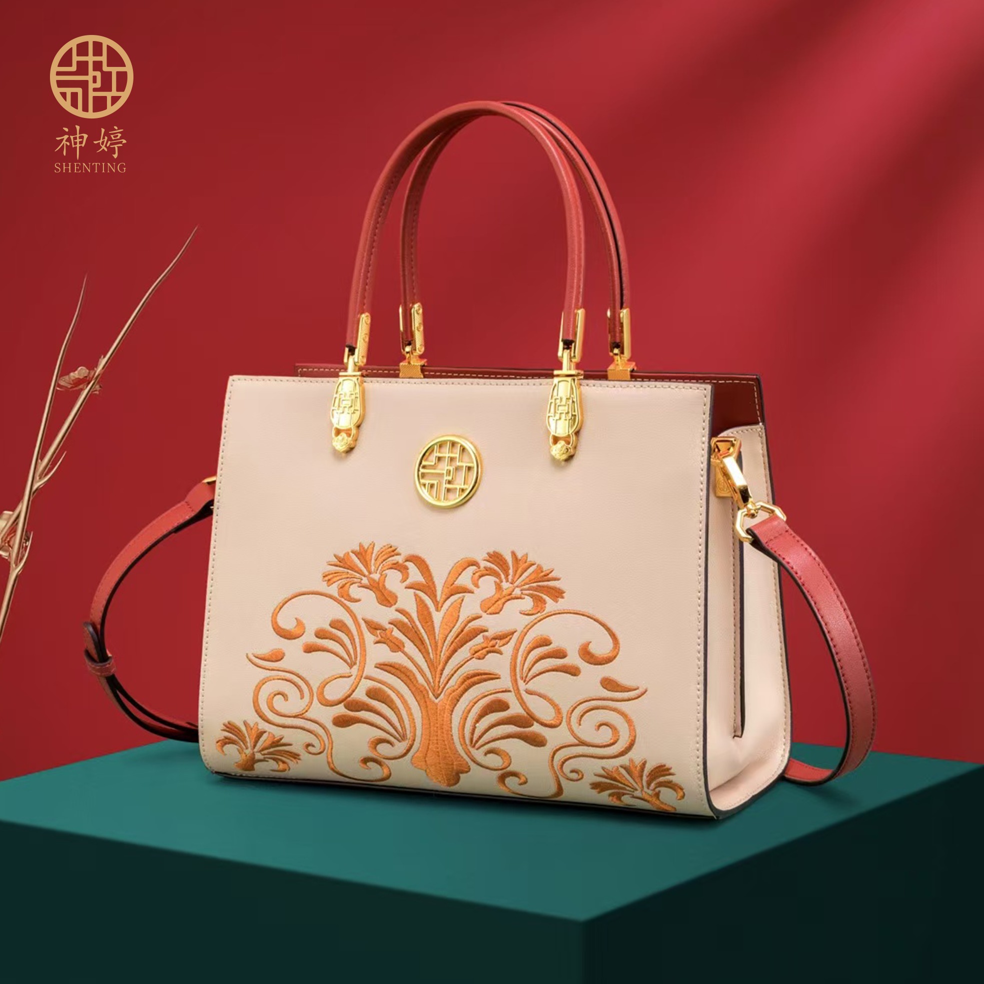 Chinese Style Classic Clutch Shoulder Tote Handbag Ladies Cow Leather Cross Body bags